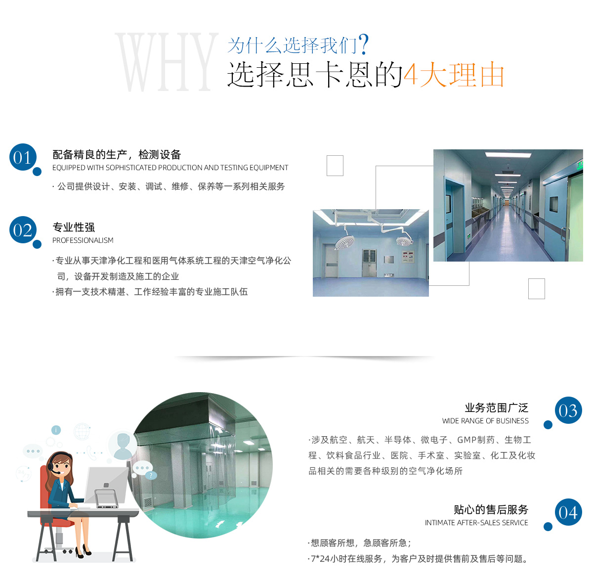 天津思卡恩凈化科技有限公司是從事天津凈化工程和氣體系統(tǒng)工程的天津凈化車間公司,設(shè)備開發(fā)制造及施工的企業(yè)。業(yè)務(wù)范圍涉及航空、航天、半導(dǎo)體、微電子、GMP制藥、生物工程、飲料食品行業(yè)、醫(yī)院、手術(shù)室、實驗室、化工及化妝品相關(guān)的天津無塵車間、商業(yè)場所環(huán)境等需要各種級別的天津無塵車間。公司提供設(shè)計、安裝、調(diào)試、維修、保養(yǎng)等一系列相關(guān)服務(wù)。天津手術(shù)室凈化公司技術(shù)強(qiáng),生產(chǎn)設(shè)備裝備精良,檢驗設(shè)備完善。同時公司還擁有一支工作經(jīng)驗豐富的施工隊伍。公司將始終秉承“用戶至上,質(zhì)量過硬,信譽(yù)佳、售后好”的宗旨,并將其貫徹到每項工程。以質(zhì)優(yōu)取得用戶信賴!由我公司設(shè)計施工的許多無塵凈化室、手術(shù)室等都得到用戶的好評,所做項目得到中國建筑工程質(zhì)量監(jiān)督檢驗中心、中國計量研究院等部門的檢驗認(rèn)可。主要產(chǎn)品:空氣凈化設(shè)備:凈化空調(diào)機(jī)組,各種無塵凈化工作臺,風(fēng)淋室,傳遞窗,空氣過濾單元﹙FFU﹚,回風(fēng)百葉等各種無塵凈化產(chǎn)品。氣體工程:...